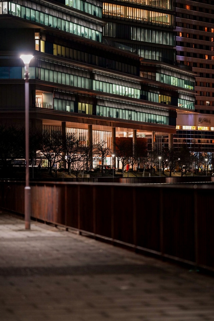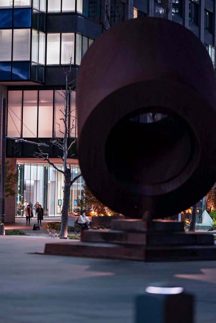 昼間とは違う表情を見せる町の空気に、このオフィス街が動き続けていることを改めて感じさせられました。