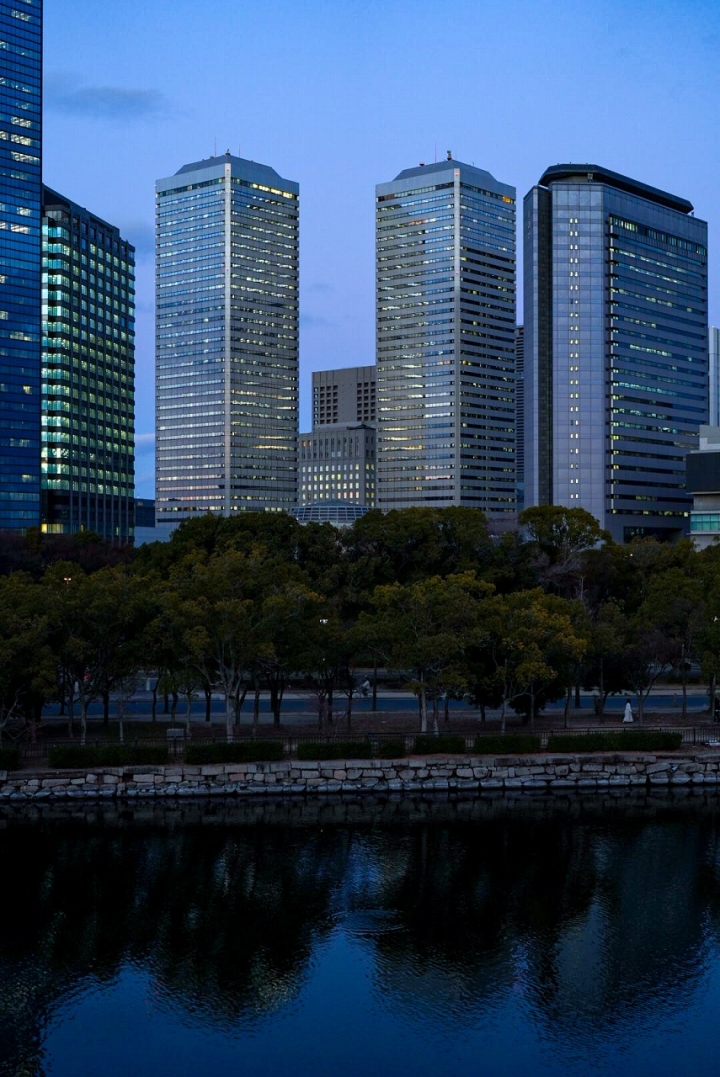 歴史を刻み続ける大阪城と、進化を続けるビジネス街の街並み。