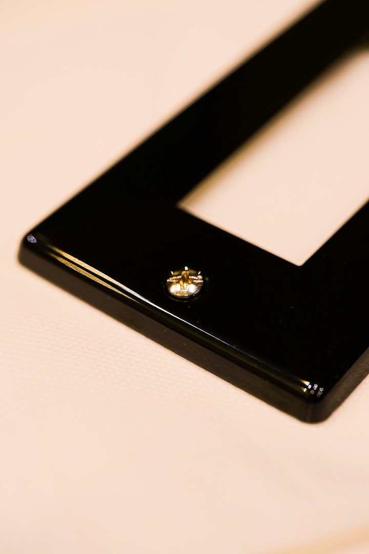 プレートの取り換えは、上下ビス2本を外し新しいプレートへ入れ替える作業ですが、漆塗りのため慎重に取り扱います。
